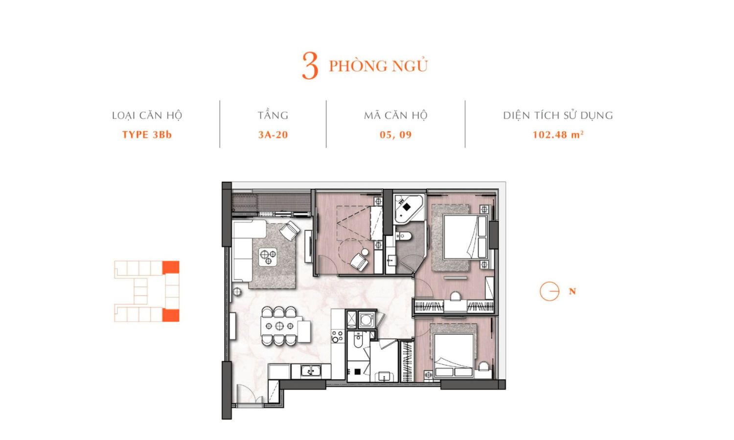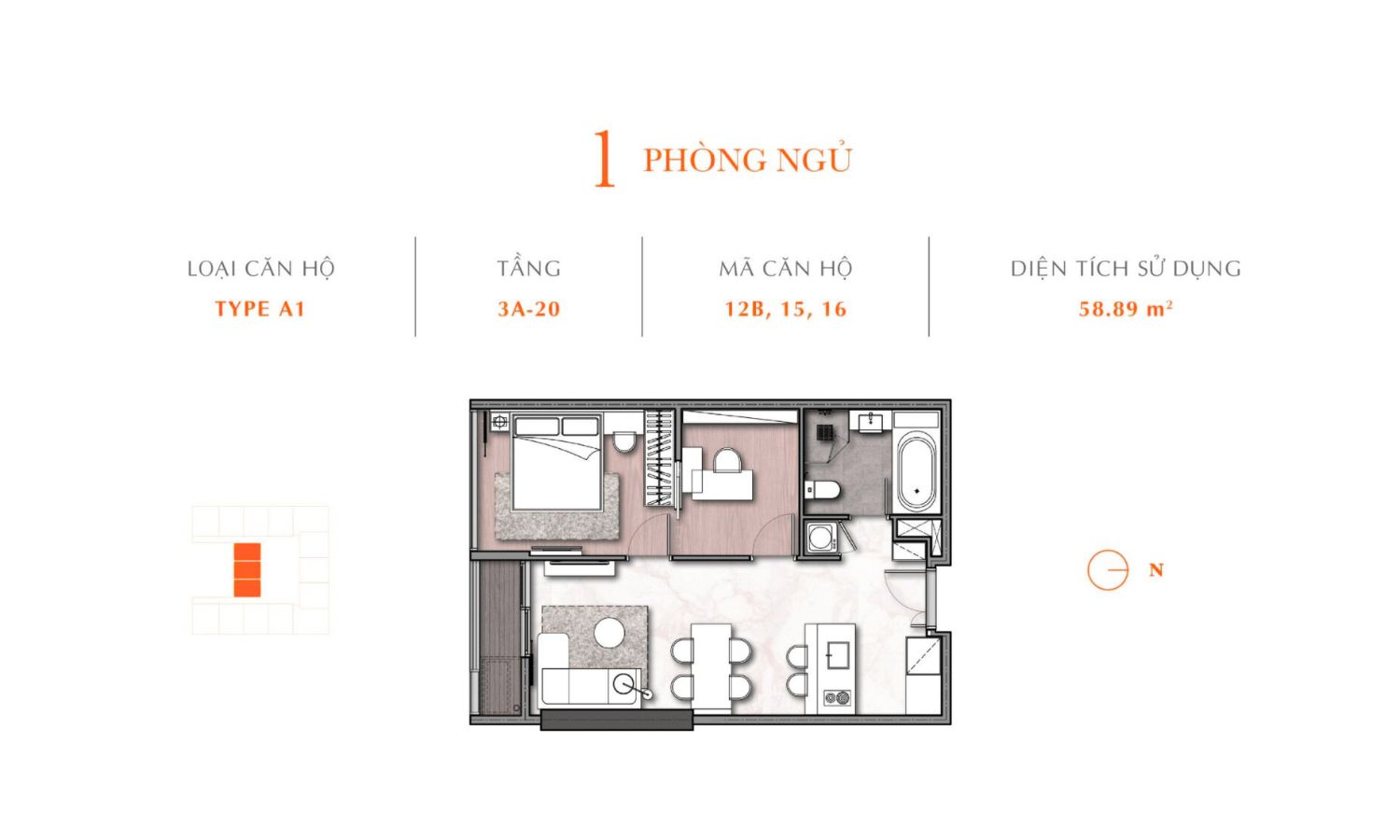 | Diện tích căn hộ | 58 – 102 m² (1PN – 3PN) |